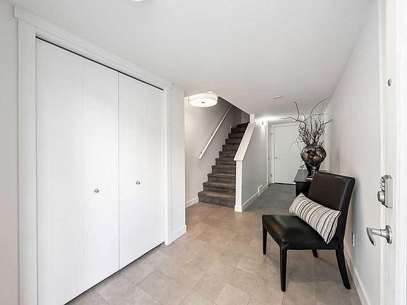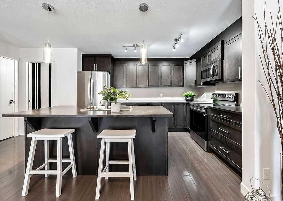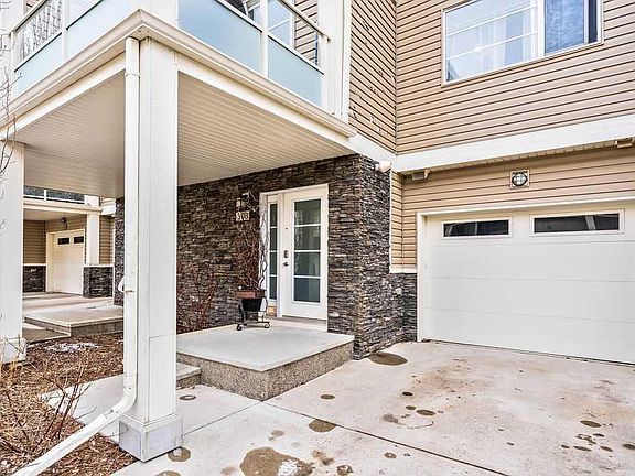 Stylish and thoughtfully upgraded, this townhome in Redstone offers the perfect blend of comfort, functionality, and low maintenance living. With 1395 square feet of developed space, this well maintained home features an open and inviting layout filled with natural light. The kitchen is a highlight with stainless steel appliances, upgraded lighting, and plenty of cabinetry for storage. A built in sound system adds a touch of convenience, while durable laminate flooring creates a modern look that is easy to care for. The dining area extends to a large private deck, ideal for relaxing outdoors or entertaining friends and family. Upstairs, the spacious primary suite includes a walk in closet and four piece ensuite, while the second bedroom stands out with soaring vaulted ceilings. Upper floor laundry and an additional full bathroom provide everyday convenience. This home also offers the comfort of a heated attached garage, newer appliances, and attractive stone accented exterior design. With parks, playgrounds, shopping, schools, golf, transit, and CrossIron Mills all nearby, Redstone is a community that truly has it all.