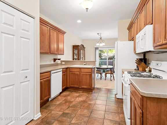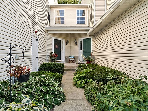 Welcome to your new home in the highly sought-after Fairway View community! This stunning townhome offers the perfect blend of comfort, style and convenience. The bright and inviting 2-story foyer welcomes you into this spacious 2 bedroom, 2.1 bath, plus a versatile loft area which adds flexibility-use it as an office, playroom, or extra lounge area. The living room features large windows allowing for excellent natural lighting and can accommodate large furniture pieces. Enjoy cozy days or evenings by the custom fireplace. There are 9'ceilings throughout the first floor. The kitchen offers 42" cabinets, large eat-in area as well as a breakfast bar and plenty of counter space. The spacious dining area, adjacent to the kitchen looks out onto the deck and backyard. There is a half bath on the main level just off the foyer. Upstairs, you will find the primary suite featuring a lovely balcony, walk-in closet, ceiling fan and luxurious bath with double sinks, a soaking tub and separate shower. The second bedroom is generously sized and has its own en-suite bath and walk-in closet. Enjoy the convenience of the 2nd floor laundry room with an abundance of cabinets for convenient storage and organization. The full basement is unfinished and offers excellent storage space as well as the potential for additional living space. Additional features include white trim and six-panel doors throughout, updated lighting, a heated 2-car garage and a large maintenance-free deck. All this and conveniently located close to Red Oaks Nature Center and the Fox River Trails, I-88, Metra Train, schools, shopping and dining. Don't miss out on this exceptional opportunity-schedule your viewing today and make Fairway View your new address! Property has been well maintained but is being sold "As-Is".