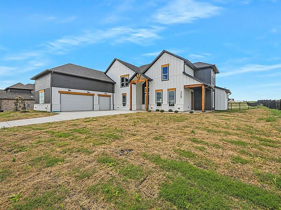 This stunning new build redefines modern living with exceptional craftsmanship, thoughtful design, & the luxury of space all set on a beautifully prepared 1-acre lot. Built on a solid concrete foundation reinforced with rebars, the home ensures unmatched durability & peace of mind. As you step inside, you're welcomed by a grand chandelier & soaring high ceilings, creating an immediate sense of elegance & openness. With an emphasis on natural light, the home features large windows throughout, filling every room with warmth and brightness. The open-concept layout seamlessly connects the breakfast area, dining room, & spacious living room an ideal setting for both intimate family time & larger gatherings. The chef-inspired kitchen is a true showpiece, equipped with a 48 in professional gas cooktop, pot filler, double ovens, quartz countertops, & a farmhouse style sink that perfectly blends function & charm. Every bedroom is an ensuite, complete with its own private bathroom. The luxurious primary suite serves as a tranquil retreat, featuring a spa-like bathroom with a Roman shower, freestanding soaking tub, an expansive custom closet with built-in drawers & a central island. A dedicated media room, complete with a built-in bar & refrigerator-ready space, offers the perfect place to entertain. Additional thoughtful touches include closet storage around the media room & a private office with exterior access, ideal for those seeking a professional workspace at home. Outdoor living is taken to the next level with an 800+ square-foot covered patio, featuring 20-foot ceilings, fireplace, & a built-in gas line ready for your grill. Whether you're hosting guests or enjoying quiet evenings, this space provides flexibility & charm. Practical features including a 3-car garage with an EV charging station, garage door to the back & wine storage. Close to Preston Rd & 75.