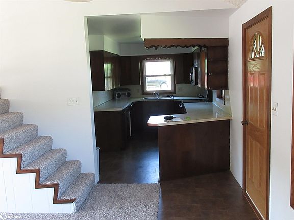 Nicely remodeled home with new carpet in the bedrooms and living room. Home features vinyl siding, two car attached garage and all appliances stay for the new owner! Home is located on the edge of town... almost like being in the country!