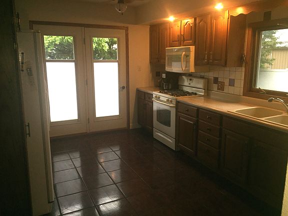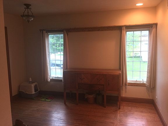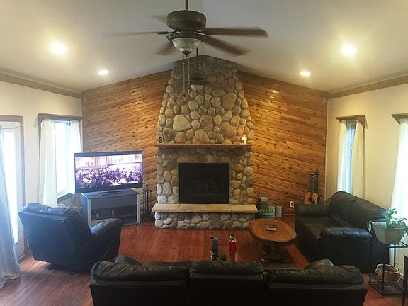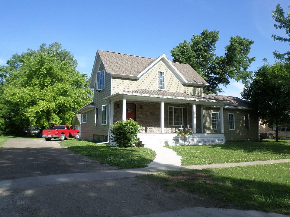 Nicely remodeled home featuring 3 bedrooms & 2 baths. The main level offers the spacious kitchen, dining room, living room, large family room with rock fireplace on beautiful wood wall, master bedroom, 3/4 bath and laundry. The upper level has 2 bedrooms and a bath. There is a possible 4th bedroom with egress window in the basement. This home has a double detached garage, newer cement board and stone siding, a charming open front porch and fenced in private back yard. Eagle casement windows, R/O drinking system and gas fireplace. Fresh paint throughout! Located very close to the Jr/High School and new Performing Arts Center.