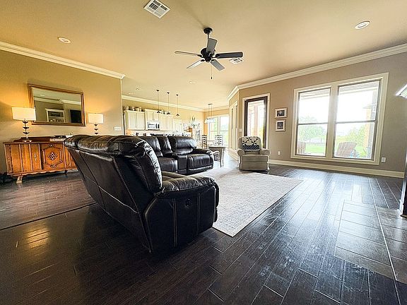 Spacious and Inviting Living Room: Bright, open layout with large windows, and views of the Cane river.