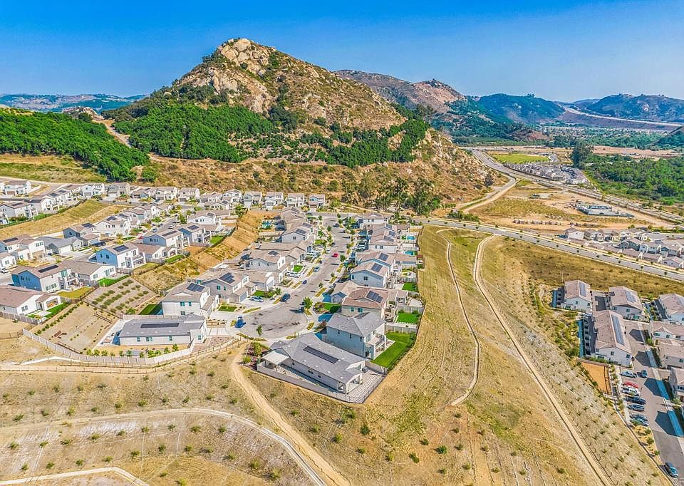 Incredible value for this immaculate newer residence that embraces the true meaning of the no maintenance home. Modern features, simple and smart home solutions to avail you living your best! Easy care cool LVP flooring, beautiful quartz countertops with contrasting cabinets throughout, upgraded appliances, level 2 EV charger, PAID OFF SOLAR SYSTEM, attached two car garage, window treatments...but also clean and easy to customize to your taste. The home is nestled in the vibrant Citro Community in the rolling hills of Monserate Mountain Preserve, enhanced by the nature's tranquility, long walking trails, year round mountain breezes and panoramic views. Citro community is perfectly positioned between San Diego, Orange County and Temecula with easy access to 15 and 76 freeways. The community offers a gorgeous swimming pool and play area with a massive modern farmhouse style party room with a large tv, fireplace and multiple sitting options as well as adjacent bbq spot that are conveniently available for full enjoyment and the nearby new sports park is ideal for fun play time. The Citro community's natural beauty is unique with the backdrop of rocky mountain hills and the canvas of the vast blue sky, offering amazing sunset views throughout the year. VA and FHA approved.