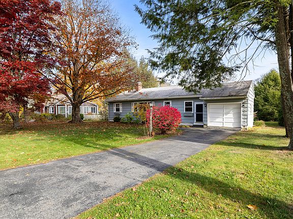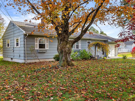 This classic ranch home blends practicality and comfort. The breezeway entry connects to the kitchen and provides interior access to the attached garage - an efficient layout for daily living. The main level showcases a bright living room with a traditional brick fireplace and wide window framing the front yard view. Hardwood floors extend through the living spaces and bedrooms, creating a cohesive look. The kitchen's granite counters, neutral colors, and laminate floors complement the white cabinetry and stainless accents. There's ample space for casual dining and a small coffee or prep station. A sliding door opens to a deck leading to the in-ground pool - ideal for warm-weather relaxation or weekend gatherings. The pool area is fully fenced for privacy and safety, while the remaining yard offers open lawn and a garden area with a steel shed for tools and equipment. Downstairs, the partially finished lower level provides flexibility with a carpeted recreation room and additional bedroom, ideal for guests, hobbies, or home fitness. The lower level also includes a large unfinished section with storage, utilities, and laundry. Situated just a few minutes' drive from Old Mystic Village, residents enjoy easy access to Mystic Seaport, Mystic Aquarium, local restaurants, Route 184, and I-95. A balanced mix of indoor comfort and outdoor amenities in a desirable coastal corridor of southeastern Connecticut.