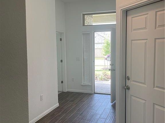 Freshly painted. Beautiful, single storied house for lease In Larkspur community. 4 bed, 2 baths with high ceilings throughout. 4th bedroom has closet and solid doors so can be used as a study. Huge open living room with beautiful flooring. Kitchen opens to living and dining space and has a breakfast island. Master bath has huge walk in closet with large glass standing shower and two sinks. There is walk-in utility room accessible from an added alcove space, ideal for hobby, work, or family organization. Several community amenities like pools, recreational center, fitness center, club house, trails and play scape. Leander ISD schools with Onsite elementary school. Refrigerator and washer, dryer included with the lease.