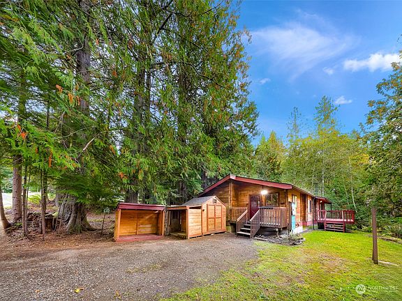 Charming 3-bed, 2-bath log home in the serene Sudden Valley community! This single-level cabin-in-the-woods style home offers a cozy, rustic feel with an open floor plan and large deck for outdoor entertaining. Situated on a spacious lot backing up to lush greenspace, you'll enjoy the peaceful surroundings and abundant wildlife. Perfect for first-time buyers or those looking for a clean slate to make their own, the home also includes two small outbuildings for storage or hobbies. Enjoy the quiet, nature-filled lifestyle, all while being close to community amenities like the lake, trails, and parks. A must-see!