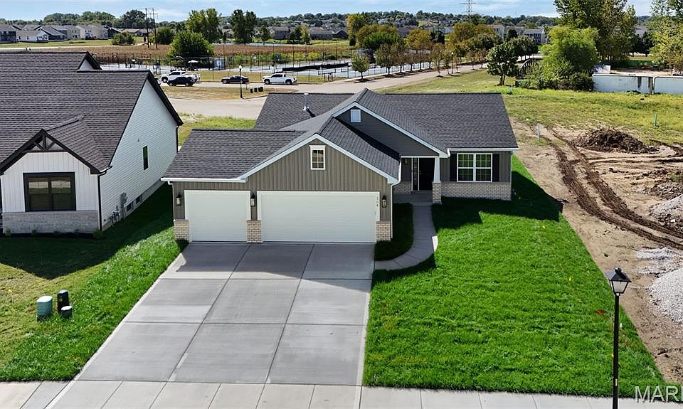 This Ranch Style Home has a 3 Car Garage, Vaulted Ceilings in the Great Room, Kitchen & Dining area. The Kitchen has White, Soft Close Cabinets & Drawers, Quartz Countertops, a 9" Deep Undermount Stainless Kitchen Sink w/ Pull Down Moen Faucet, an Island with Overhang, Stainless Appliances, Recessed Lighting & Laminate Floors which flow into the Great Room & Dining area. The Primary Bath has a 5' Shower w/ Seat & Semi Frameless Shower Door, Double Bowl, Adult Hght. White Vanities, Wave Bowls & Moen Faucets. Other Features in this Home Include 2 Panel Doors w/ Levers, 5 1/4" Baseboards, Custom Paint, Garage Door Opener w/ Keypad, Egress Window, Rough in for a Future Bath in LL, a 16' x 14' Concrete Patio & a Fully Sodded Yard.