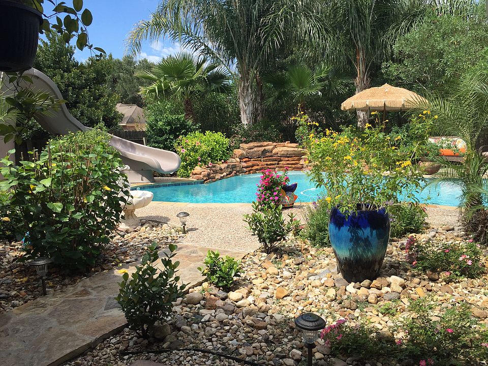 Absolutely gorgeous 4 bedroom/2 bath/2 living/2 dining home on a tree shaded corner in beautiful Woodway Subdivision. Home has been tastefully updated with granite countertop, new appliances, and all lighting and fixtures. Recently painted and decorated with exquisite taste. Yard is beautifully landscaped around gorgeous pool and covered party patio with built in Flat screen TV. New roof installed within past four years. Back Yard is great for party and entertaining. Pride of ownership.Call