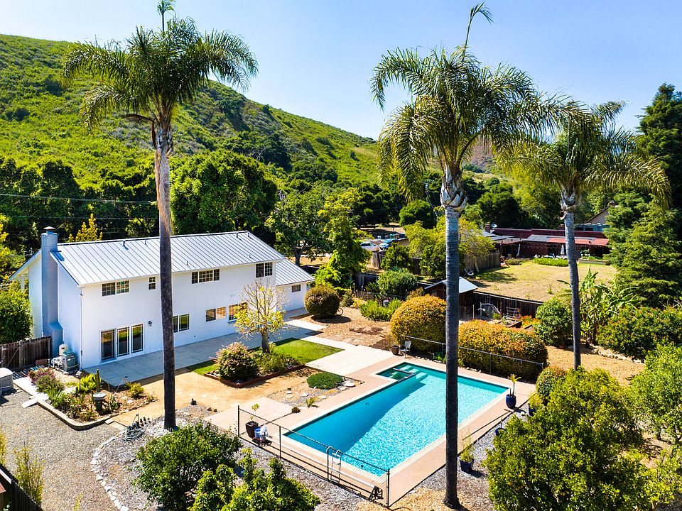 Welcome to 308 Vereda Leyenda! Located in the sought-after Rancho Embarcadero community of Goleta, this stunning 4 bedroom and 3 bathroom (plus den!) 2,400+ sq. ft. residence is resting on a flat 0.87 acre lot in the heart of the neighborhood. You'll be immediately drawn to the home's contemporary aesthetic with its sleek metal roof and recently painted stucco and brick siding. The front yard includes a spacious circular driveway, garden with meandering paths, mature trees, and a 2-car garage. The living room features porcelain tile floors, a slider to the back patio, and a cozy wood-burning fireplace. The remodeled kitchen features Miele appliances, maple cabinets, high quality fixtures, and quartzite countertops. The kitchen looks out over the backyard so you can stay in the action while everyone is having a great time outdoors. There is a fun pass-through bar from the kitchen to the open patio, perfect for BBQ's! Just outside the kitchen is a well placed laundry/mud room with a door to the side yard, kick your sandals off and hang up your suits after a day at Haskell's Beach. There is also a versatile ground-floor bonus room, great as a den for movie night or a bed/bath suite. There is a custom-made wrought iron handrail and banister leading upstairs. The primary bedroom has an attached bath with a walk-in glass enclosed shower, bench, and dual shower heads. Down the hall are 3 additional bedrooms and a hallway bath. With summer days in mind, this home provides the ultimate outdoor oasis. Step out to the backyard, where a sparkling pool invites you to relax and unwind under the sun. The expansive, nearly flat acre of land provides endless possibilities. Explore the numerous fruit trees, enjoy the corral for your equestrian pursuits, or tend to your very own chicken coop. There is ample room to add an ADU on this property. Beyond the privacy and tranquility of this home, you'll appreciate its dynamic location. This home is perfect for those seeking a touch of country living while still enjoying all the conveniences of nearby amenities. Just a few miles away are major retailers, restaurants, coffee, and more. Come and see for yourself! "Rancho Embarcadero" is the residential subdivision of a special municipal improvement district located in NW Goleta. Within the community is a playground, lawn area, and community center. There's also a horse riding ring and an 18 acre parcel with walking trails deemed "Tecolote Meadows" for homeowners to enjoy. This unique and rural neighborhood is located minutes from The Camino Real Marketplace, Ritz Carlton, Sandpiper Golf Course, UCSB, and much more.
