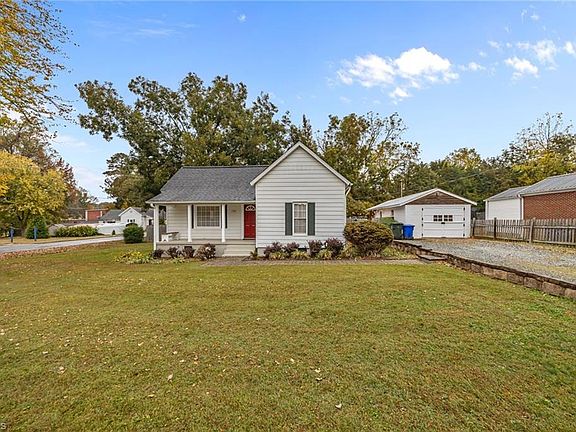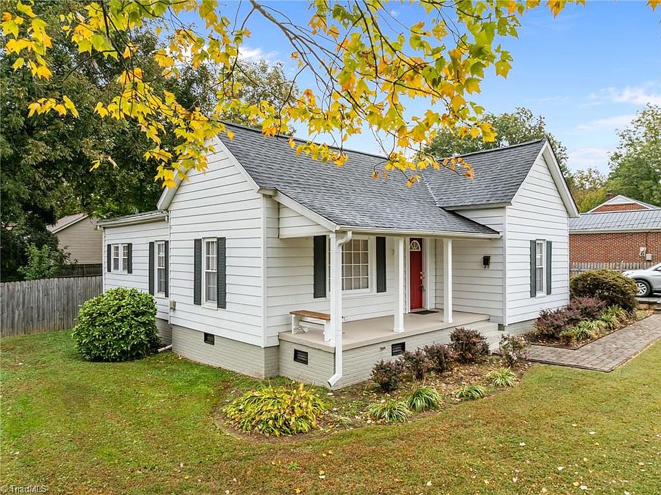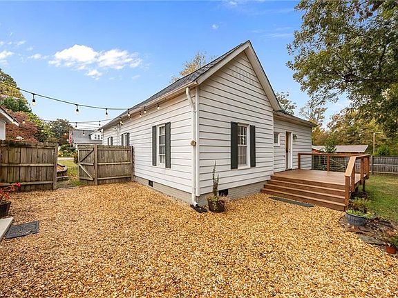 Adorable Downtown Bungalow Full of Character and Modern Comforts! Discover the perfect blend of historic charm and modern updates in this 2BR/2BA corner-lot bungalow just steps from vibrant downtown Mebane. A light-filled living room welcomes you with hardwood floors and a stunning tongue-and-groove ceiling. The updated kitchen boasts stainless steel appliances, a gas range, and concrete countertops. Retreat to the primary suite with its custom accent wall, walk-in closet, and stylish bath. Enjoy a private fenced yard ideal for pets, gardening, or relaxing evenings. The versatile detached garage—with heat, A/C setup, sink, Ethernet, and TV hookups—makes a perfect office, studio, or workshop, plus there’s extra storage behind it. With a new roof (2025) and unbeatable location near parks, courts, the library, and downtown dining, this charming home offers comfort, convenience, and character in one!