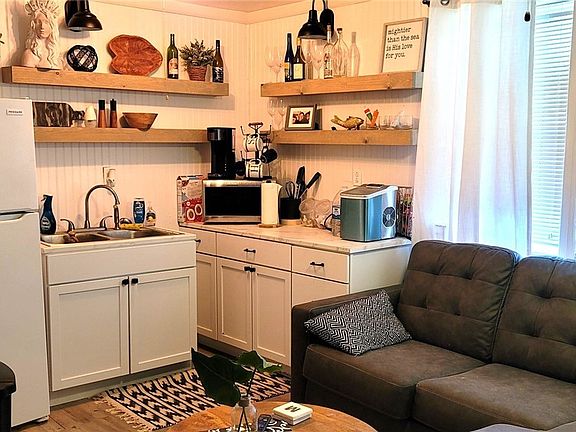 Perfect opportunity to own a little piece of paradise with the coastal cottage. One bedroom, one bath, open concept fish camp close to local shopping and restaurants. Covered porch, large enough for BBQ pit and relaxing after a great day of fishing! Being on blocks, this cottage could easily be improved with more living space. Lot size is +/- 60 X 142, room for RV if desired. Mature shade trees in back yard of property for outdoor entertaining. The possibilities on this property are endless.