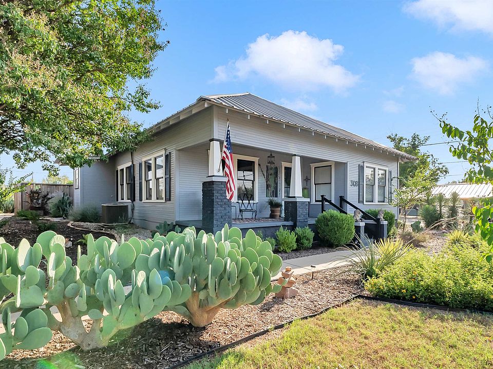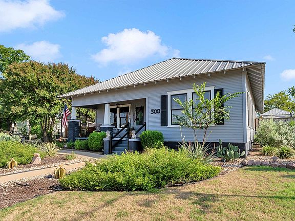 Charming and updated 3 bedroom, 2 bathroom 1930s Craftsman home located on an oversight lot in Llano, TX, just a short walk to the historic courthouse square. This beautiful property sits on three lots and is full of character with original shiplap walls, brick accents, wood floors, and tall ceilings that create a warm and inviting feel. The kitchen has been beautifully updated with a great mix of open and closed cabinetry, island, stainless steal appliances, large sink, tile backsplash, and concrete countertops. The outdoor space is just as special, featuring a cowboy pool and heated/cooled cabana with a full kitchen that make it perfect for relaxing or entertaining. A detached double carport with attached workshop adds convenience, while the completely fenced backyard includes a large screened-in porch and gardening area. A rare find in the heart of Llano, this home blends timeless style with modern updates.