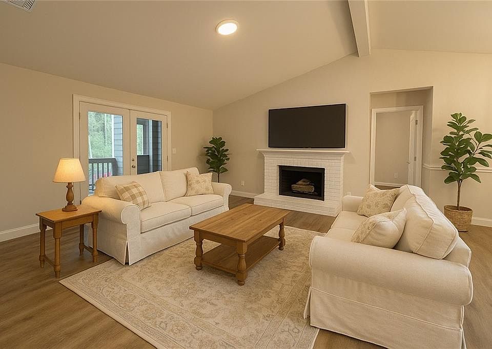 TOTAL RENOVATION with no expense spared! Amazing opportunity for investors or homeowners to live in one of the best locations in Roswell. This beautiful condo offers the opportunity to live in the heart of Historic Roswell, just minutes to dining, shops, parks, Roswell Riverwalk trail system, Chattahoochee River, festivals like Alive in Roswell, the nightlife on Canton Street (downtown Roswell) and don't miss the NEW Roswell Junction Food Hall just a short walk away with dining, live music and outdoor patio. This 2-bedroom unit has been FULLY RENOVATED from top to bottom. Large great room with Cathedral Ceiling features luxury vinyl floors throughout entire living area, newly refinished white fireplace and fresh, neutral paint throughout. Kitchen boasts brand new stainless steel appliances, New Quartz counters and New timeless white cabinetry. There is a large laundry room off the kitchen. The 2 spacious bedrooms are perfect for roommates, both with walk-in closets with custom built ins, private bathrooms and split on either side of the condo offering privacy. Enjoy peaceful evenings on the covered deck. Enjoy the use of the community saltwater pool and gas grill located at end of cul-de-sac on Warm Springs. Roof 5 yrs. HOA fees cover roofs, termite coverage, water/sewer, trash/recycling. Come enjoy the low maintenance lifestyle this condo has to offer!