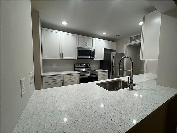 Newly refinished white fireplaceCovered deckPrivate bathroomsNew timeless white cabinetryNew quartz countersGas grillCommunity saltwater pool