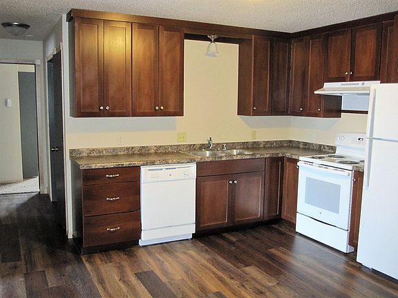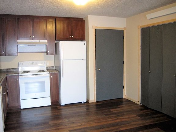 This is a 2 bedroom, 1 bath apartment located on the 2nd floor of the building. This apartment is approximately 750 square feet and is located close to the schools and local parks. Appliances include stove, fridge, dishwasher, washer, dryer and wall a/c. Each unit has a one-car detached garage stall. Tenant pays electric, heat, water and sewer. $100 annual charge assessed to all tenants every January to cover common area interior and exterior maintenance costs. Trash, lawn care and snow removal are included in rent. This property does not allow pets.