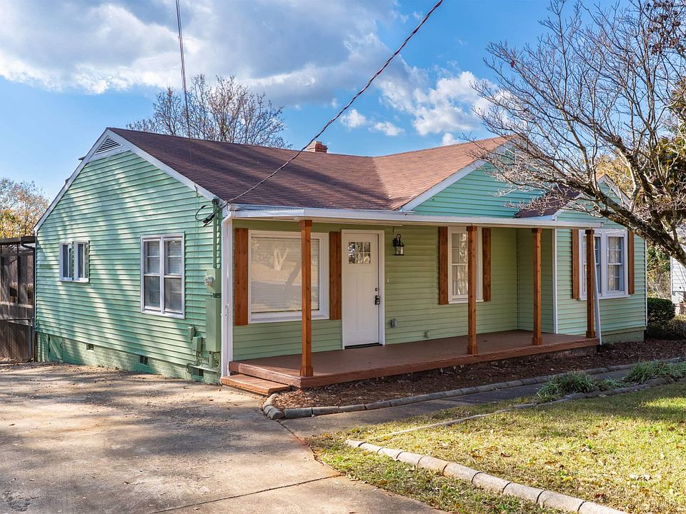 Beautifully renovated, move-in ready home! This 4-bedroom / 2-bathroom home sits right in the heart of Cherrydale—just 7 minutes to Downtown Greenville! Situated on a corner lot with two driveways, fully fenced-in yard, and storage shed, this property offers both convenience and functionality. This location cannot be beat- less than a mile from everyday essentials including grocery stores, gas stations, banks, medical offices, gym, movie theater, pharmacy, and all the shops and restaurants in the N Pleasantburg and Poinsett Hwy area! You’re also just minutes from Piney Mountain Park, Paris Mountain, and Travelers Rest. Inside, you are sure to fall in love with the open floor plan, brand-new LVP flooring, new carpet, and a fully remodeled kitchen featuring granite countertops, new cabinets, and brand-new stainless steel appliance package. The ultra-spacious primary bedroom includes an updated ensuite with new double vanity, tiled walk-in shower, and walk-in closet. Three additional bedrooms and secondary full-bath offer flexibility for family members, guests, a home office, or even a workout room—whatever fits your lifestyle! After making your way to the back of the house, you will find a charming air-conditioned sun-room overlooking a backyard perfect for entertaining with a custom pergola, outdoor lighting, and beautiful mature trees. Also, there's a new water heater, duct work, and the deck was fully repaired! Come see this four bedroom, one-story home with unbeatable access to everything at an unbeatable price—schedule your showing today!!