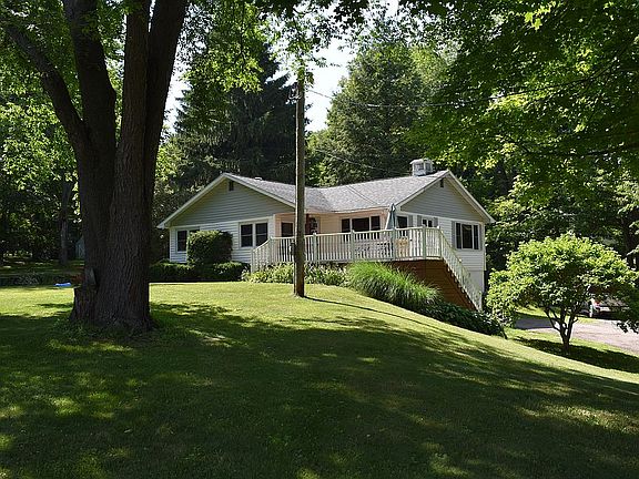 For Sale by Owner. Beautiful raised ranch located in a private country setting just outside the Village of Perry! This is a three bedroom one bath house with a large outside deck attached to the main level. The main living area features an open floor plan that includes a living room, dining room, and eat in kitchen. The basement has two parking spaces with automatic garage doors. The basement is partially finished (600 sq ft) with a laundry room, work area with built in work bench, and an additional room with wood fire place. The wood stove is a new (in 2017) Quadra Fire with a blower. The house is also heated by oil furnace. Also on the property is a tri level gamble roof barn with two additional parking spaces and a lean to off the back of the barn. The barn has a new metal roof (2016). The property is about 3.87 acres and has approximately 2 acres of hardwoods. There is over 200 maple trees that could be taped for syrup production. Wildlife, including deer and turkey, are always passing through. Water is supplied by a private well, and there is a private septic system which has been pumped regularly.