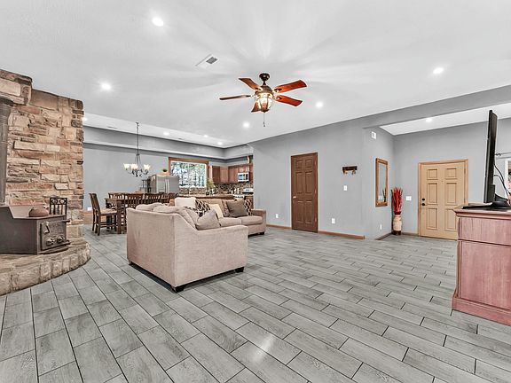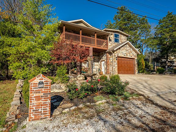 NEED SOME SPACE? NO PROBLEM! Here is your chance to get this spacious open-concept living area on the main and second level with many unique features and over 3,100 sqft of living space. This home has a main bedroom on the first floor and three additional large bedrooms upstairs. The smart design includes two laundry areas, one in the front of the house with its own access, a storm shelter, and a wood stove in the living room designed to reduce waste and maximize savings. The owners also use it for cooking. Conveniently, you will find a garden for your fresh veggies in the back. The patio has a cozy style with a rustic stove/ chimney, perfect for adding warmth and entertainment.Not to mention the classic stone front that exudes timeless charm and sophistication, which makes it a standout in the neighborhood, this property blends durability with undeniable curb appeal. It is ideally located only 10 minutes from Branson Landing and has easy access to beautiful Lake Taneycomo. Additional highlights: Granite countertops, backsplash, stainless steel appliances, full-length windows, and more.One-year HSA home warranty is included. No restrictions for nightly rental. Don't let this one go. MORE HOME FOR YOUR BUCK!
