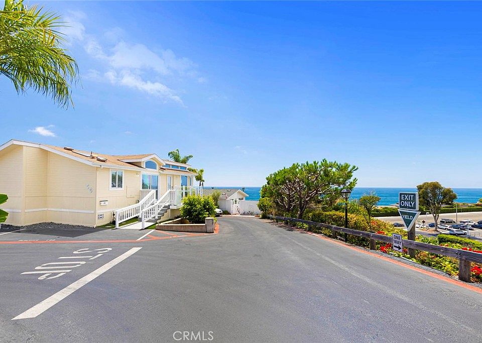 Welcome to this stunning coastal property in Laguna beach. Offering breathtaking ocean views and prime location along the iconic West Coast Highway. This is a land lease community. Own your own home and lease the land. Walk across the street to the beach and Montage Resort and many restaurants and grocery stores. This home has the most incredible sunset views 365 days a year. Beautiful 2 bed 2 bath home at the end of the street with only one neighbor featuring magnificent ocean views from the living room, kitchen and bedroom,with a large wrap around deck. This quaint cottage feels like a single family home, open great room, living and kitchen. Cathedral ceilings, and three sets of sliding doors leading to sunset and viewing decks. Lots of natural light,beautiful ravine on one side, skylights throughout the house. Kitchen upgraded, gas stove top, Bosch dishwasher. Custom glass entry door, vinyl windows, Trex deck with warranty. No property tax or hoa all included in land lease of $4821 a month, lease transfers at 30 years and they have an annual increase of 3% or cpi whichever is greater. Community pool and spa and clubhouse recently upgraded. Easy access to town with a trolley at the base of the hill to take you into Laguna Beach downtown, art galleries, shopping, views of coastal cliffs and sunsets to take your breath away. Step onto your deck for coffee and watch the waves roll in or wine and cheese at sunset. Perfect indoor outdoor space for all your entertaining Brand newly remodeled quaint hotel right next door for overflow family.
