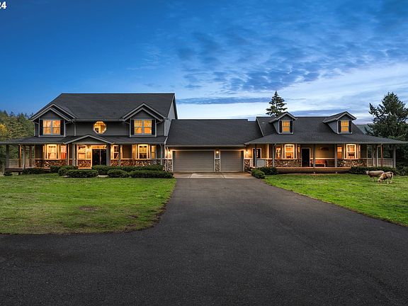 This dream property is located in the beautiful countryside, under an hour from Portland Oregon. This incredible homestead offers you more than you can imagine. Almost twenty fully fenced acres of serene nature with two ponds, and a rippling creek - complete with its own creekside house. Outstanding views and a plethora of local wildlife. This property is a true paradise retreat! Main home and additional attached home are connected through an interior breezeway. Inside the custom built homes, you will find features that will WOW you at almost every turn. As you enter the foyer you’ll be greeted by a stunning chandelier and the spectacular views offered from the floor to ceiling windows in the main living room. Explore this immaculately designed house and be amazed by the thoughtfulness and safety planning that went into the design. Primary bedroom on main level boasting two hidden walk in closets, and the ensuite of your dreams. Relax in the tub soaking in the soft light under the chandelier, all while taking in gorgeous forest views. The upper and lower levels are equally outstanding. Upstairs you’ll find an additional four bedrooms and two full bathrooms. Downstairs is complete with a home gym and additional living area with it's own double door entrance. Now, let’s pass through the interior breezeway to the attached second home. Primary bedroom on main with ensuite, gourmet chef's kitchen, and additional living and sleeping space upstairs. Here you will also find the attic. Above the interior breezeway, there is incredible storage space. You will not run out of room here. Outdoors, don't miss the 2 stall animal barn, TWO full RV hook up sites, the shop (power, water, & upgraded welder electric plugs), exterior office (fully insulated w/power), and canning room (power, water & sink). Treehouse, fire pit, horseshoes. Multiple opportunities for income producing ADU's. This property has endless possibilities. Schedule a tour today and come see for yourself!