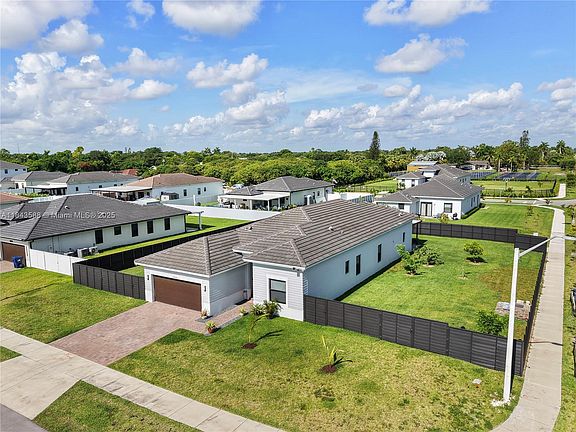 Spacious corner one-story SFR. 4BD/4BTH 4 bathrooms no HOA no CDD This beautifully maintained HOME features an oversize 15,341 sq.ft fully fenced corner lot, offering privacy & plenty of space for your boat RV & your dream pool. Enjoy impact resistant windows & doors throughout, crystal glass shower doors in every bath, tile flooring throughout. The open concept layout boasts stunning vaulted ceilings lots of natural lights & modern kitchen completes with quartz island. New S/S Appliances. Step outside to your private Oasis with spacious covered Terrace & gazebo & an irrigation system sprinkler systems fed by private well to keep your landscaping lush year around. Conveniently located near homestead Miami Speedway dash Biscayne National Park, Florida Turnpike. Close to the Keys !