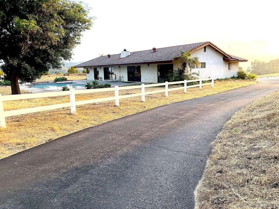 Peace and quiet, just minutes away from the city, awaits you at this charming home on a spectacular piece of property. The custom designed 4 bedroom 3 bath house sits atop 3.3 acres of natural beauty. Each spacious room displays different aspects of the dramatic panoramic views. The kitchen is charming, fully equipped, farmhouse quaint. Whether you are a daily lap swimmer, or simply a casual splasher and frolicker, the refreshing 20 x 40 swimming pool/spa is made for you. The property’s 3.3 acres currently provides all the "elbow room" you could possibly want, while allowing for creative expansion — be it horse corrals, fruit orchards, tennis court, golf practice area, recreational vehicles, and more. Words and pictures barely do this home justice. You are invited to check out this exquisite property to get a sense of how coming home can simultaneously feel like you have arrived at a wonderful vacation destination while simply living day to day at the top of the world.