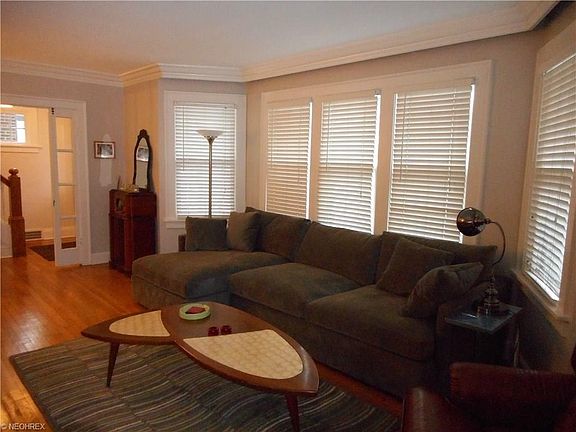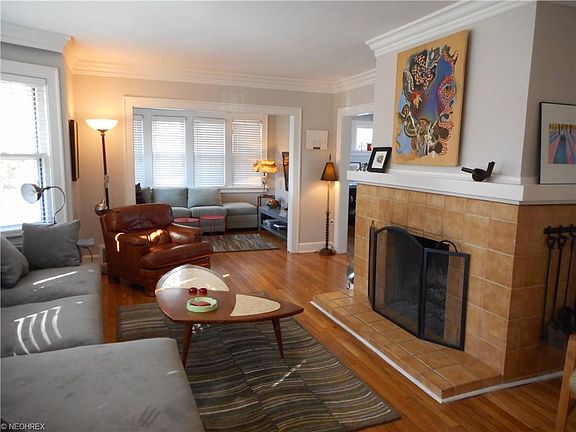 Light and bright classic Cleveland Heights colonial that is just right for living in- Newer furnace and central air. Living Room with bay window, large tiled fireplace, and crown moldings opens to small extra room. Dining Room accentuates the positive. Eat-in kitchen with newer counters and flooring features lots of cabinets and desk area and has pantry. Lighter colored hardwood floors complement the décor. Nice flow with spacious rooms- kitchen and Dining Room looking out in to back yard. Second floor has four charming bedrooms and an updated bath. There is a walk-up attic with a whole house fan. Back yard is fenced, has a 2 car garage and patio and has some play area. The home is set in the popular walkable Cedar-Lee area of Cleveland Heights and will be offered violation free.