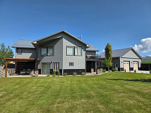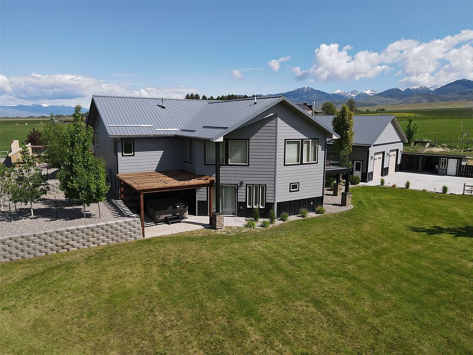 Enjoy Montana living at its finest in this spacious 4048 sq ft home situated on over 7 acres with breathtaking mountain views in every direction. The open floor plan creates a warm and inviting flow, ideal for entertaining or relaxing. A master suite and guest bedroom are on the main level with the kitchen, large dining room, half bath, and living room where large windows frame the stunning views. Another bedroom is in the basement as well as a family room, full bath, bar, laundry/mud room, and office area with side room ideal for a safe. Outside you'll find underground sprinklers keeping the yard lush, fenced dog yard with kennel, hot tub, chicken coop, and a massive 32x32 garage/shop. Located near charming small towns and surrounded by endless outdoor recreation, this property offers the Montana lifestyle so many dream of - a perfect blend of scenery, space, and serenity.