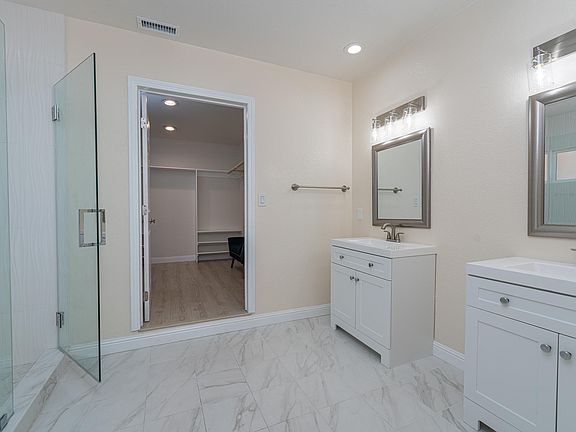 A stunning, fully renovated single story home, just a short drive from downtown Walnut Creek and Pleasant Hill. The home boosts three spacious light filled bedrooms, open kitchen, large living and dining room, and an attached one bedroom ADU with a separate entrance. The house is fully fenced in with a large front and backyard with a lawn area, perfect for a kids play structure. The Primary Bedroom enjoys sliding glass doors with access to a deck and backyard, an ensuite bath with a walk in shower, and extra-large walk in closet with built in shelves. Find 2 additional generous size bedrooms & a sizable hall bath with separate tub & walk in shower. The ADU includes a full kitchen, bathroom with a walk in shower, and second story bedroom. Additional amenities include two driveways, offering the opportunity for RV parking. The home is set in the perfect location, on a cul de sac, with a walk path to Pleasant Hill Elementary and a park, ideal for jogging and dog walking.