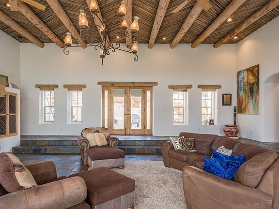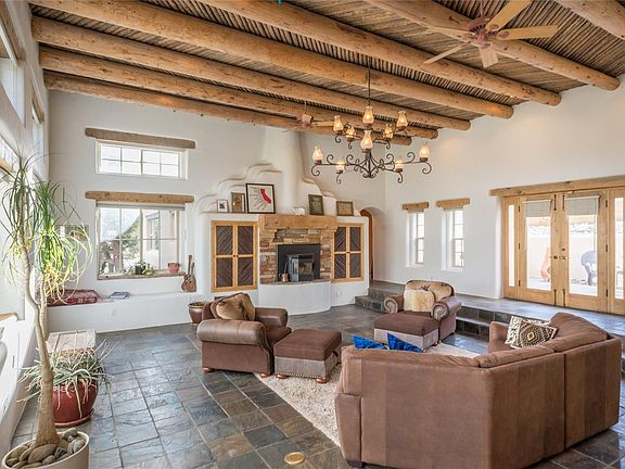 This custom Santa Fe style adobe & entire property feature stunning views with a private & secluded feel. Stucco exterior & white plastered interior, Viga roof with herringbone latilla ceilings, waterfalled entryway & slate covered radiant-heated floors throughout the home. Kitchen has hard white maple floors, wormy-maple cabinets & granite counter tops. Sub-Zero refrigerator, 48' Viking double oven range, stainless steel dishwasher, microwave & trash compactor make this kitchen a chef's dream. Master suite has a fireplace, covered porch, office space, walk-in closet & Jacuzzi tub. Sunken Great Room has 15-foot ceilings & a double door entry to the courtyard. Entertainment center & maple bookshelves surround the fireplace. Tiled courtyard is spacious, has a fountain & ample seating. Southwestern gardens & a breakfast patio out double doors off dining room. Security system & Toro irrigation system in place. Full detail of this custom home can be found in the additional attachments.