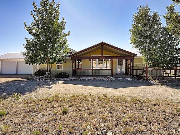 Affordability, close to town and horse property for up to three horse, this pristine 1620 square foot manufactured home is ready for a quick closing and move in. Enjoy the sunsets from the covered front porch ideal for entertaining and relaxing then on to gardening in the fenced yard with mature trees and landscaping. Lovely open concept with spacious living room which flows nicely into the dining room and kitchen plus a corner breakfast nook. Private master suite includes a 5 piece ensuite, ample closet space, hard wood floors and easy living floor plan, just off the living room. 2 additional carpeted bedrooms, including a murphy bed, spectacular views and access to a full bath. Engaging kitchen offers a nice pantry, extended counter and cabinet space plus easy access to the dining room and breakfast nook. Additional special features include Cherry floors, pellet stove, ceiling fans, and bonus space with french doors, ideal for home office, gym, den or multitude of options. Pleasant back yard with sunny deck, concrete pad for fun and games, plus storage in the sizable shed. Fenced yard for privacy and pets with views of downtown Buena Vista and the surrounding mountains. Attached 2 car garage is just steps away thru the laundry room with stackable washer and dryer. Augmented well allows for up to 3 horses on the property.