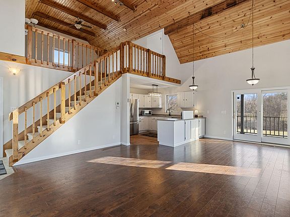 Discover MI Wine Country Living! This beautiful, move-in ready home is nestled on 9+ acres. It features 2 bedrooms (main level and primary in loft), 2 baths, and an open-concept design. The kitchen showcases new appliances, while the dining area leads to a covered porch with views of a wooded grove and pond. Enjoy the 2-story vaulted ceilings in the living room, accentuated by exposed beams. The lower level offers a family room with walkout access to the backyard/pond, a full bath, and potential for a 3rd bedroom. The circular driveway surrounds a low-maintenance wildflower garden. This property includes a 2-car garage and 2 outbuildings. Just moments away from downtown Buchanan, Fernwood Gardens, Wineries/Breweries, Three Oaks, and historic Pearl Mill. Check out the list of improvements!