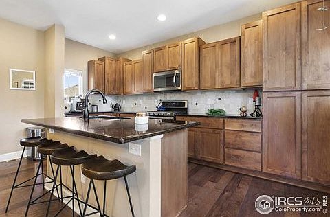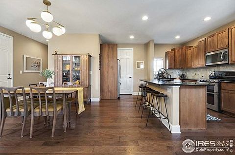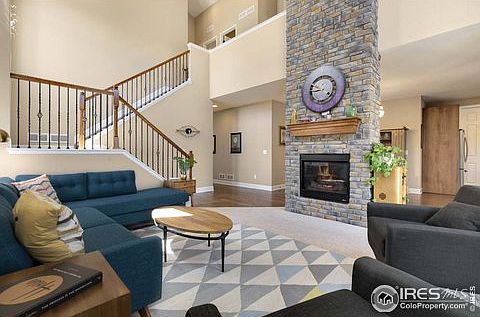 Energy efficient modern beauty, dripping with class and situated on a spacious lot. Quality shows in every inch of this immaculately kept home. From the dramatic floor to ceiling stone fireplace, and vaulted ceilings, to designer finishes, custom alder soft close cabinetry, eight foot doors, and windows that let in a flow of natural light. True main level living is a possibility here with study being a conforming bedroom near a full bath and laundry room on the first floor. You'll love easy access to I-25, Shops at Centerra, and downtown Loveland. Just steps to the pool and and a few blocks away from parks and trails, this is a rare opportunity to to get into a unique semi-custom home.