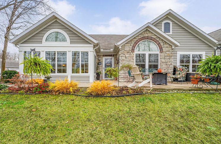 Stunning Waterfront Condo in The Villas on the River. Rarely available waterfront unit with vaulted ceilings and every upgrade available, offering spectacular river & wooded views from almost every room! This is the Canterbury model, the largest unit available in the Villa & features a fabulous 4 season sunroom, beautiful upgraded cabinetry, chef's kitchen with stainless appliances & granite counter tops, gas fireplace, 2 car attached garage & more. Enjoy main floor living in this beautiful home with an amazingly private location! Flooring throughout is luxury vinyl plank with a true look & feel of wood but long wearing & maintenance free. Multiple community amenities including clubhouse & pool, boat launch, & walking trails. Move into this worry free home & start living a DREAMY Life!!