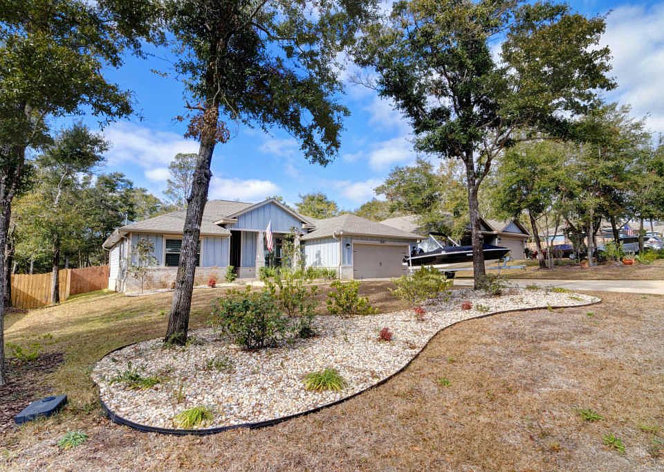 CRAFTSMAN Custom Built Home in EAST NAVARRE ~ this luxurious 4 bed/2 bath floor plan is exquisite inside and out ~Great Location with easy access to Navarre Beach, Navarre Waterfront Park and Hwy 98 to Hurlburt Field AFB.This Stunning Robbins Builders Custom Home offers trend setting Features~Greeted by a walk in foyer sweeping through to your open floor plan~ kitchen with custom cabinets~ crown molding, beautiful GRANITE counter tops~Under mount sink~S/S appliances ~slick top Center Island with Breakfast bar & open flow to the dining area and large family room, Wood laminate through the foyer & main living area with tiled laundry and bathrooms.Master with trey ceiling & ceiling fan~Master bath offers an oversized walk in TILED shower ~ Granite double vanity