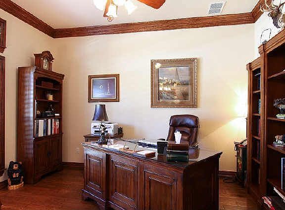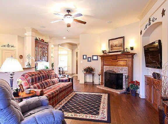 Beautiful 1 story David Weekly home with upgrades galore! Extensive hardwoods invite you in to see all of the fabulous features inc:Chefs Dream kitchen,granite counters,double ovens,stainless appl,abundant cabinetry with glass front cabinets,under cabinet lighting, large island & built in desk area. Additional features inc: plantation shutters, private study with French doors & wood stained trim,overszd master shower, sitting area in master ste.