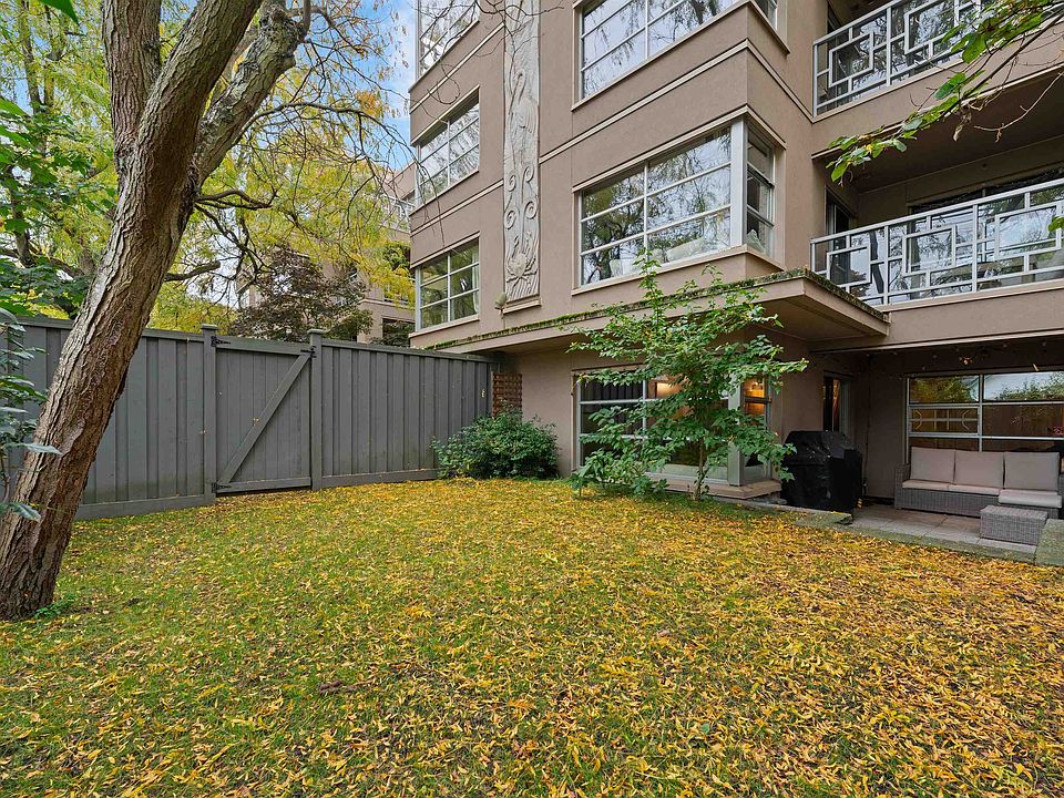 Ground-Level Garden Retreat in the Heart of Kitsilano! Rarely available, this 1 bed + flex garden home offers DOG LOVERS the perfect setup with a private fenced yard, grassy lawn, and a sunny 590 SF patio that truly feels like your own house. Inside you’ll find granite counters, Miele appliances, gas fireplace, updated laminate floors, fresh paint, an open kitchen with ample storage, bedroom with ensuite, and insuite laundry. BONUS: TWO parking stalls. On the quiet side of W 4th, this home is ideal for summer BBQs and entertaining. Steps to parks, transit, restaurants, and the beach. Proactive strata with building upgrades. 2 pets & rentals allowed (6-month min). Open Houses: Sat & Sun, Oct 25 & 26, 2–4pm.