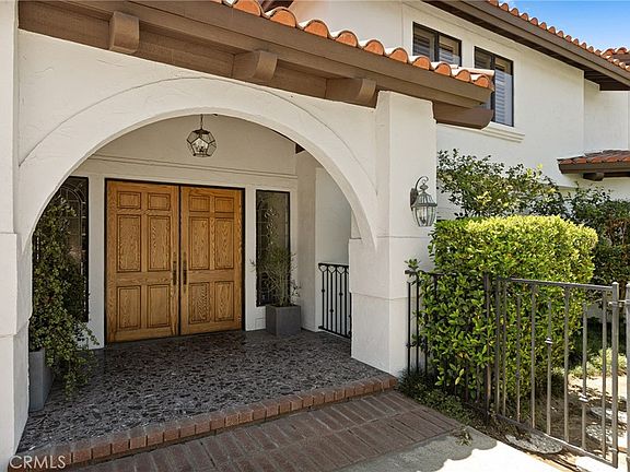 First time on the market! This light-filled, updated Mediterranean 2-story offers style, space, and comfort in a coveted cul-de-sac location. Step into a spacious foyer with beveled glass windows by famed artist Tom Medlicott that opens to a bright living and dining area. Walls of glass overlook lush landscaping. Architectural details include seamed glass and unique ceiling features. The remodeled kitchen boasts a large island with seating, a Thermador stove, built-in oven and microwave, Subzero fridge and fridge drawers, and a separate breakfast room with wet bar. A downstairs bedroom and full bath offer convenience, along with a walk-in pantry and large laundry room with sink. Upstairs features a welcoming loft with coffee bar. Spacious primary suite with built-in California Closets, dressing room, and large remodeled bath, plus two more bedrooms and an additional full bath. 2 separate heating and air conditioning systems for upstairs and down. Plantation shutters throughout. Enjoy a 3-car garage with direct access, tons of storage & epoxy floors , a beautifully landscaped yard, sparkling pool and spa has new equipment, and a covered patio perfect for summer dining. Mature Fruit trees. South side of the roof is new. Close to Mariposa School. A rare opportunity in a sought-after location!