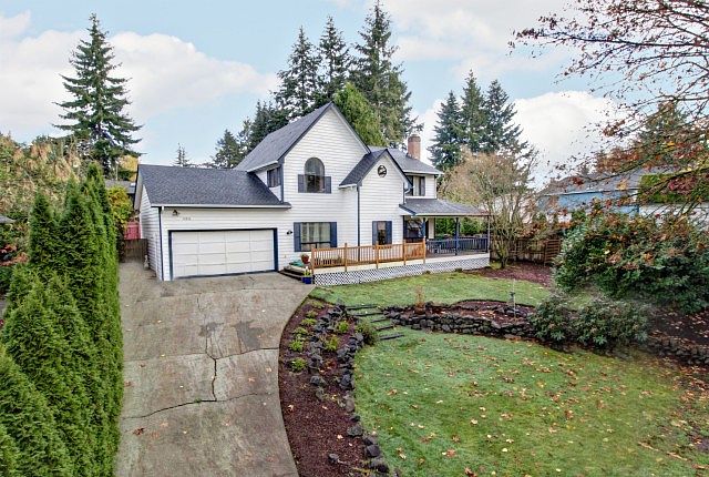 5ar. prop. in Graham w/ HUGE 4 Bay 2,280 SF Shop w/ RV Door! 4 bedroom home w/ extra unfin space. Home comes w/ all the extras. Shop includes independent elect & commercial vhcle lift. Kitchen equipped w/ center work islands, granite counter-tops, eating bar, hardwoods, and formal dining room. King size master suite has 5 piece bath w/jetted tub and see through fireplace. WI Closet w/organizers! 800 SF bonus room. Attached garage has heated floors. Crown molding throughout with heat pump!