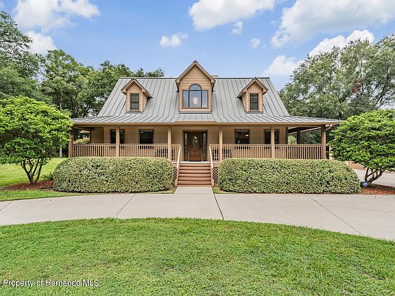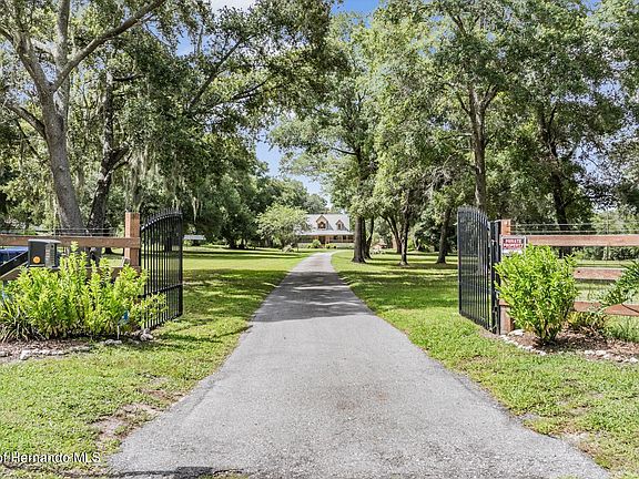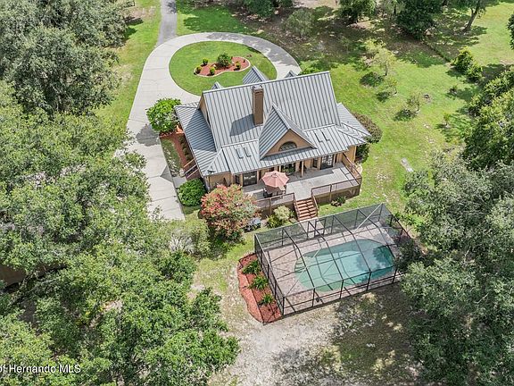 Welcome to unmatched country living in a beautiful 2 story custom-built farm home on 10 beautiful acres. This 4 bedroom, 3 bathroom pool home features proximity, construction, comfort, and possibilities unlike any other! Just beyond your private gate sits a beautiful blend of country living without sacrificing any comfort and no detail left behind. Step inside to be greeted by vaulted ceilings with a large foyer and open wooden staircase. Large tile flooring flow seamlessly throughout the living spaces and kitchen. Enjoy the living space with massive ceilings, custom French doors, stone wood-burning fireplace making entertaining or relaxation a breeze. The large and open kitchen is a chefs dream. Endless granite counters and wooden cabinet space will accommodate families, parties, or events of any size! Wind down in your master bedroom retreat featuring ensuite bathroom with soaking tub, beautiful French doors, luxury vinyl flooring, and glass step-in shower. The guest bedrooms and office space features ample storage space and size providing comfort for guests or additional storage. Step beyond the French doors to enjoy a serene saltwater pool with fresh pavers overlooking the rear pastures behind the home. The exterior of the home is Hardy Board for style and convenience with minimal upkeep needed. Surrounding the house is TREX boarding to eliminate maintenance while keeping style and function. The oversized detached garage comfortably fits 3 vehicles, workshop storage, benches, and more! The second oversized garage is your blank canvas! Use it as a workshop, man cave, or whatever your imagination brings! Enjoy a detached lifestyle that's less than an hour away from Tampa, beaches, and major airports. Travel and access will be a breeze with major highways close by with shopping and restaurants minutes away. WHOLE HOUSE GENERATOR 2018. Metal roof is 2018, Both LENNOX AC units are 3 year old. This energy efficient property is a RARE find. Make it yours before its gone.
