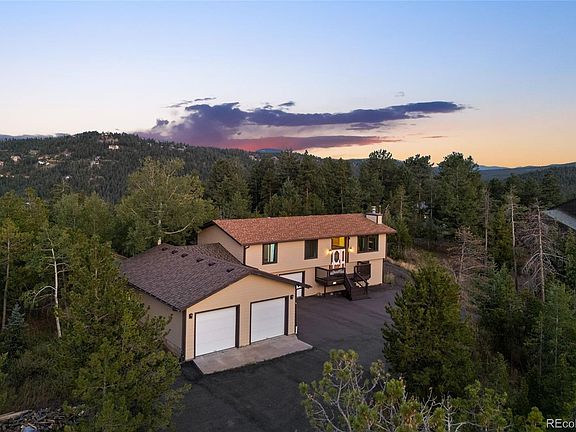Nestled in the scenic foothills of Evergreen Valley Estates, this charming 3-bedroom, 3-bathroom home offers the perfect blend of privacy, space, and sweeping mountain views. Plus a huge shop for the serious enthusiast or to run your business. Set on 1.15 acres of partially wooded, rolling terrain, you'll enjoy the peaceful beauty of nature while being just a short drive to downtown Evergreen and the amenities of Bergen Park. Inside, the open floorplan features a spacious living room with large windows and great light - windows are less than a year old, a cozy fireplace, and effortless flow to the dining area and kitchen — complete with ample cabinetry and lots of newer flooring. The primary suite includes an en-suite bath, ceiling fan, and serene views of the surrounding trees. Two additional main-level bedrooms offer flexibility for family, guests, or office space. The full basement with direct access to the garage out of any weather, offers potential for additional living space, and includes a half bath and a large family room ready for your personal touch. With updated appliances, this home has all the essentials and more. Newer siding and a new driveway with improved access to the rear part of the property. Step outside to enjoy the private deck, fresh mountain air, and panoramic vistas. In addition to the convenient attached 2-car garage there's a huge versatile attached shop (6-car) with unlimited potential. Located near Evergreen Lake and open space trails, this property offers the perfect mountain lifestyle just 30 minutes from Denver.