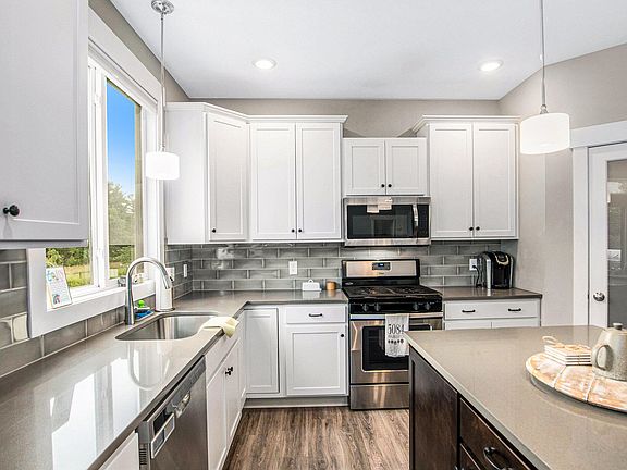 Welcome to this stunning 5-bedroom, 2.5-bath home in highly sought-after Timberline Acres! Step inside to an inviting open-concept layout featuring vaulted ceilings, oversized windows that flood the home with natural light, and a cozy fireplace perfect for gathering. The gourmet kitchen showcases stainless steel appliances, a center island, and plenty of storage, flowing seamlessly into the dining and living areas—ideal for entertaining. A freshly painted deck extends your living space outdoors, complete with an outdoor firepit for year-round enjoyment. The spacious primary suite offers a true retreat with its expansive closet and private bath. The finished lower level includes an additional bedroom and a large recreation room, perfect for movie nights, hobbies, or play. A 3-stall garage adds convenience and storage, while thoughtful updates throughout make this home move-in ready. Don't miss your chance to enjoy the perfect blend of comfort, style, and location in Timberline Acres!