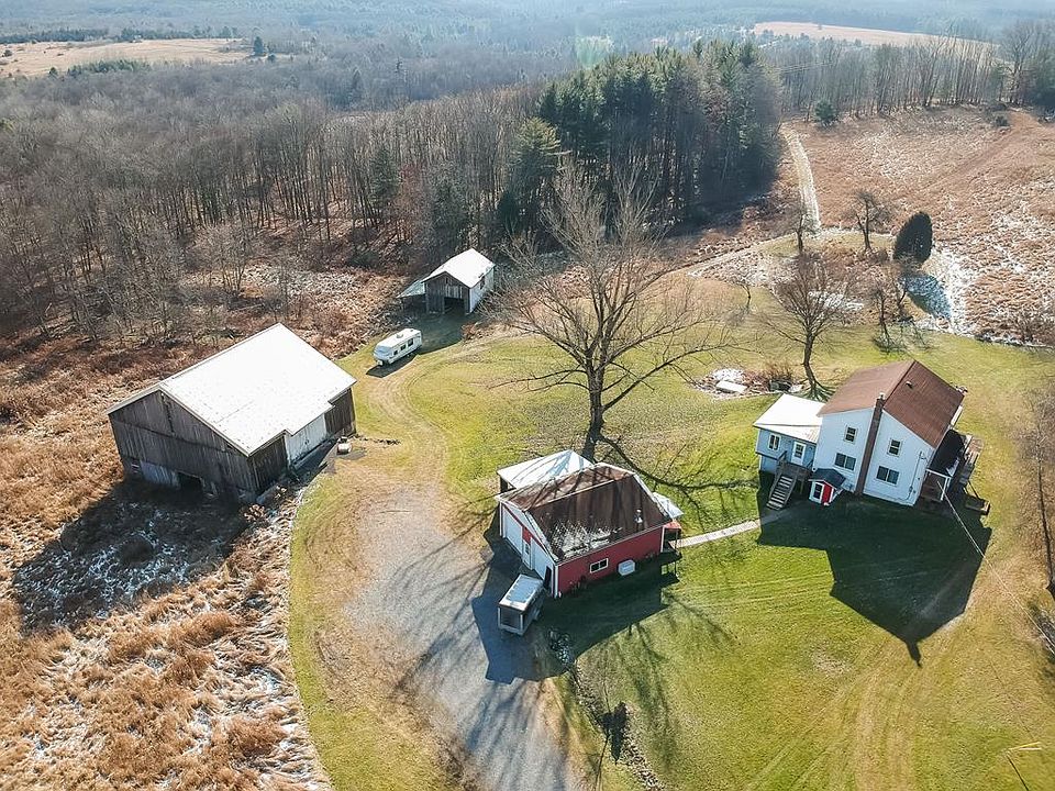 Discover this completely renovated 3-bedroom, 2 1/2-bath farmhouse, nestled on just under 20 acres of idyllic farmland. The home boasts an inviting ambiance with hickory hardwood floors throughout and porcelain tile in the two full baths. The main bedroom features a luxurious air bath tub, adding an extra touch of comfort. Culinary enthusiasts will appreciate the well-equipped kitchen, showcasing a sleek quartz countertop, a striking granite island, and hickory KraftMaid soft close cabinets, complemented by top-of-the-line Kenmore Elite appliances. The property includes an oversized, heated detached garage and a classic bank barn, perfect for various uses, alongside a charming small pond. Upgraded for modern living, the house features a new HVAC system with central air and an on-demand Generac generator, ensuring year-round comfort. Minutes from Interstate 80, Cook Forest and Clear State Parks, plus the Clarion River.
