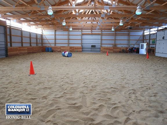 Great property! 4 bedroom, 2 bath home has large kitchen w/stainless appliances & Bosch dishwasher, family rm w/cult. stone fireplace, loft overlooking kitchen, lower level utility room, wooden deck and patio. Indoor sand floor riding arena, 3.5 ac. pasture w/4 strand elec. braid fences, 3 paddocks, run-in shed, 40'x25' gar., heated shop, 50'x50' fenced dog yard.