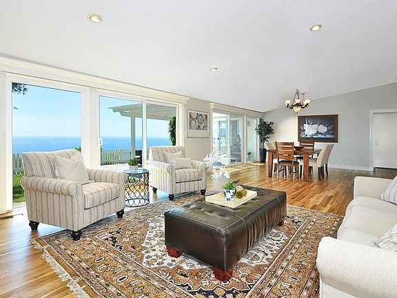 VIEW! VIEW! VIEW! The most Amazing and Panoramic Ocean View from Catalina all the way to Malibu everyone dreams about. Upon entering this extensively remodeled and upgraded One Level house, you will be stunned by the beauty of the Pacific Ocean just in front of you. A nice landing area in the entrance leads you to the spacious GREAT ROOM with fireplace and A DINING ROOM, both have Amazing Ocean View, vaulted ceilings & hardwood floors. In addition, there are sliders to the awesome rear yard, which has a slate patio & a nice grassy area for you to enjoy the endless view. The GOURMET KITCHEN is nicely remodeled with stone counters, stainless steel appliances, soft hinges cabinets, built-in desk & a breakfast bar. THE MASTER SUITE has a large sitting area, killer views & a remodeled bathroom. The Second Master Suite has a private remodeled bath, window bench & remodeled bathroom, which is perfect for in-laws or guest. This home has new interior paints, hardwood floor, an upgraded electrical panel, plumbing & tankless water heater. The house was taped at 2,206 sq ft including the bonus room and inside laundry room which were added without permits but under the existing roof line according to previous listing information. County record states 1,979 sq ft. Buyer to verify. This home is conveniently located near ocean walking trails, Pt Vicente School & the Golden Cove Shopping Center with Trader Joe's, restaurants & Starbucks. Come see this beautiful view house & you will love it.