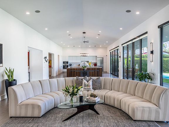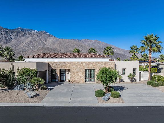 Welcome to a Modern Desert Masterpiece! Set behind the prestigious guard gates of Monte Sereno, 3085 Arroyo Seco is a statement of refined modern living--where architecture, landscape, and light merge into a singular desert experience. Designed by acclaimed architect Anthony Poon, this rare contemporary villa captures the essence of Palm Springs glamour with expansive volumes and a seamless connection to its mountain surroundings. Situated on an oversized, approximately one-third acre lot with no direct neighbors behind, the home embraces uninterrupted panoramic views of the San Jacinto Mountains - views that shift in color and drama from sunrise to sunset. Nearly floor-to-ceiling glass dissolves boundaries, allowing the desert's natural beauty to flow effortlessly indoors. The great room, with its soaring ceilings and dramatic Fleetwood sliders, unfolds into a showstopping chef's kitchen crafted for both high-end entertaining and quiet evenings at home. Dual oversized islands anchor the space, complemented by Silestone Quartz surfaces, sleek Italian Modulo Cucine cabinetry, and a full suite of Miele appliances. Every detail reflects modern sophistication with a timeless sensibility. The primary suite offers a private sanctuary of calm and light, featuring a spa-inspired bath with a free-standing soaking tub, walk-in shower, dual vessel sinks, and an expansive dressing room. Outdoors, a covered terrace frames the sparkling pool and in-ground spa--an ideal setting for sun-drenched afternoons, golden-hour cocktails, and quiet desert nights under a canopy of stars. The home's orientation and lot placement create a rare sense of privacy and openness. A separate +/- 318 Sq Ft guest casita provides luxurious accommodations for visitors, complete with its own bath, walk-in closet, mini-bar, dual entry doors, and dedicated HVAC. With +/- 3,515 Sq Ft in the main home, a two-car garage, owned solar, tankless water heater, multizone HVAC, and Low-E dual-glazed windows, this residence beautifully blends luxury with thoughtful sustainability. 3085 Arroyo Seco is more than a home - it is a modern luxury retreat for those who appreciate architecture, privacy, and the timeless allure of Palm Springs living. Welcome Home!