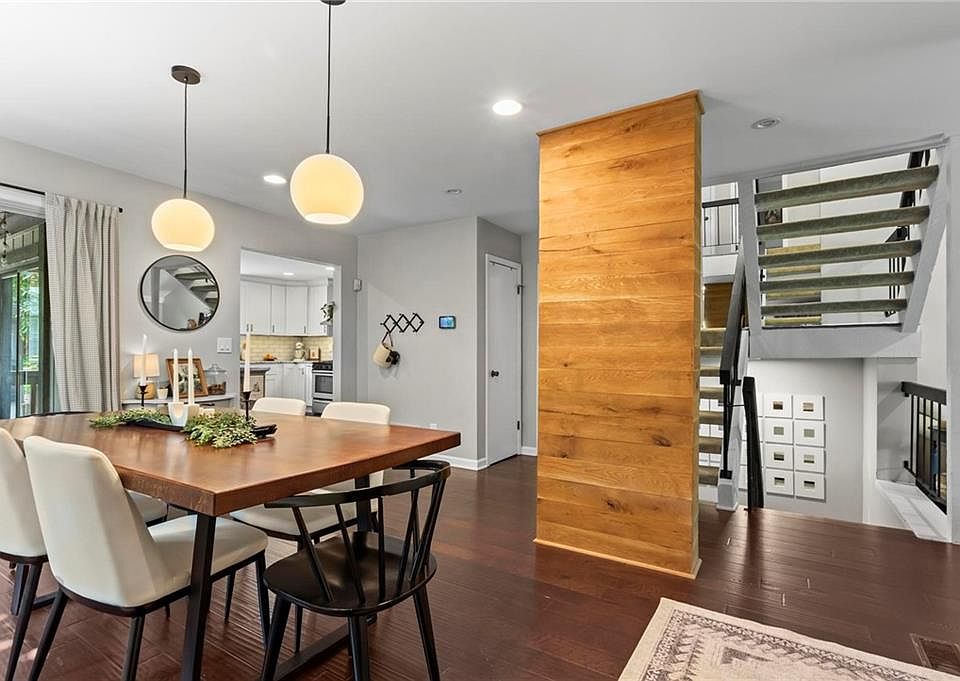 SUPER CUTE end-unit with so much natural light and an excellent location! This 3-bedroom, 2.5-bath home is perfect for first-time buyers or those looking to downsize without compromising style or space. As an end-unit, it boasts an abundance of natural light throughout. The bright and spacious kitchen features an island with seating, granite countertops, a renovated backsplash, and easy access to the porch through glass doors—ideal for entertaining or enjoying your morning coffee. The cozy den includes a large window and fireplace, while the open dining area offers a custom accent wall, updated lighting fixtures, and a second set of glass doors leading to the porch. Upstairs, you'll find brand-new carpeting throughout. The generous primary suite offers a large window with new blinds, a new ceiling fan, and an ensuite bathroom. Two additional bedrooms share a renovated full bathroom. This home also includes a spacious 2-car garage with lots of storage. The Valencia Hills community offers a pool, tennis courts/pickleball, and walking trails to the Chattahoochee River! Just minutes from The Battery and Truist Park and convenient access to major highways, shopping, dining, and more, this home truly has it all!