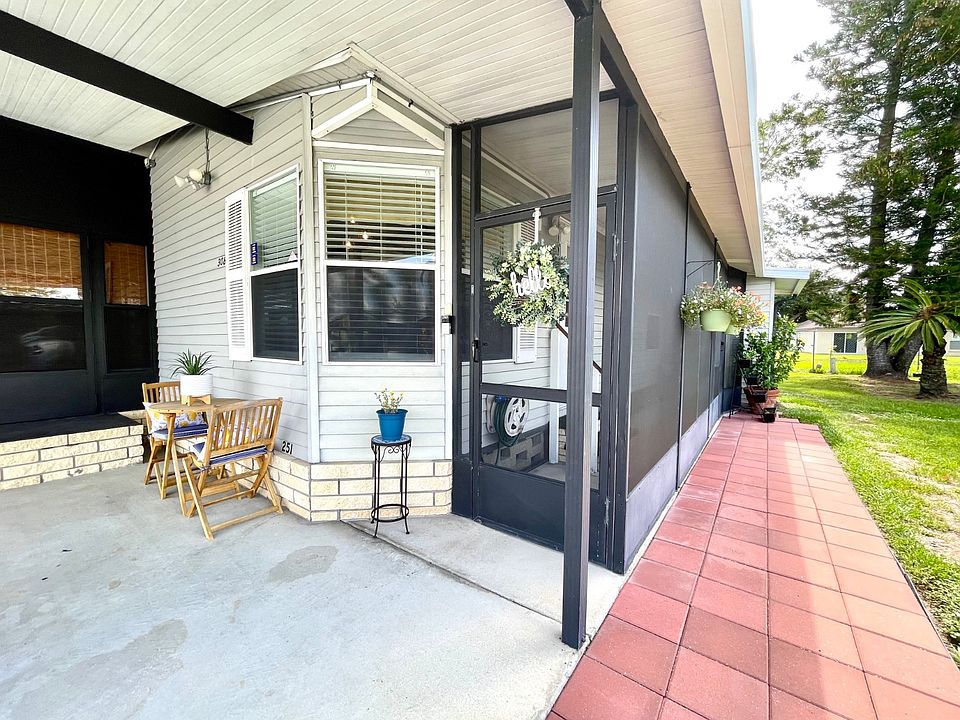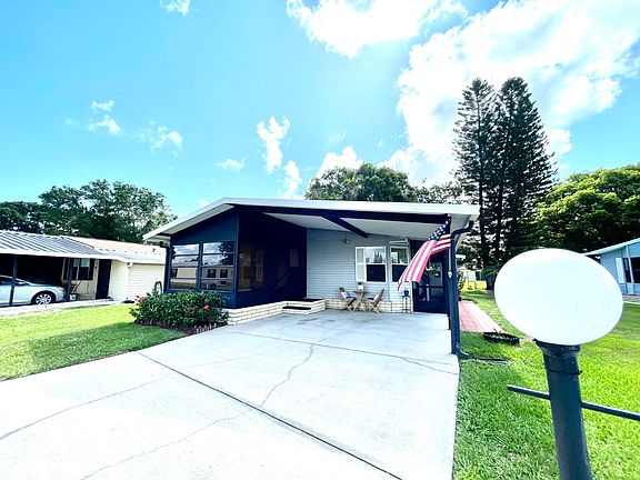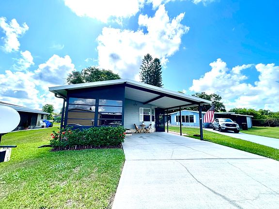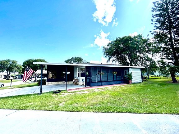 Discover comfort and convenience in this well maintained 2 bedroom, 2 bath manufactured home, nestled in a peaceful setting with no rear neighbors, just beautiful natural surroundings and the soothing presence of local birds. Step inside to find updated vinyl flooring throughout, offering durability and style. The kitchen is equipped with sleek black appliances, including a refrigerator and stove, perfect for home cooked meals and entertaining. Adjacent to the main living space is a bright and inviting Florida sunroom. Additional features include a washer and dryer, two spacious storage sheds for all your tools and hobbies, and an antenna that provides free access to local TV channels. Whether you are downsizing, looking for a seasonal retreat, or settling into your next chapter, this home offers a rare combination of privacy, comfort, and connection to nature.