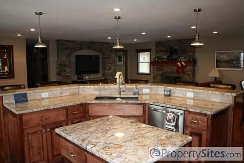 Gorgeous inside. Totally rehabbed ranch looks like new construction. Open floor plan with granite, travertine marble backsplash, Brazilian cherry hardwood or slate floors. 2 additions give you a large master suite and a wonderful sunroom. Master bath has walkin shower. Fantastic finish downstairs with 2nd fireplace and wetbar/kitchen. Outbuilding has 3 10X12 garage doors, water, electricity and a bath. Stucco and custom concrete. Expoxy garage and 1st floor laundry. Laundry has a utility sink.