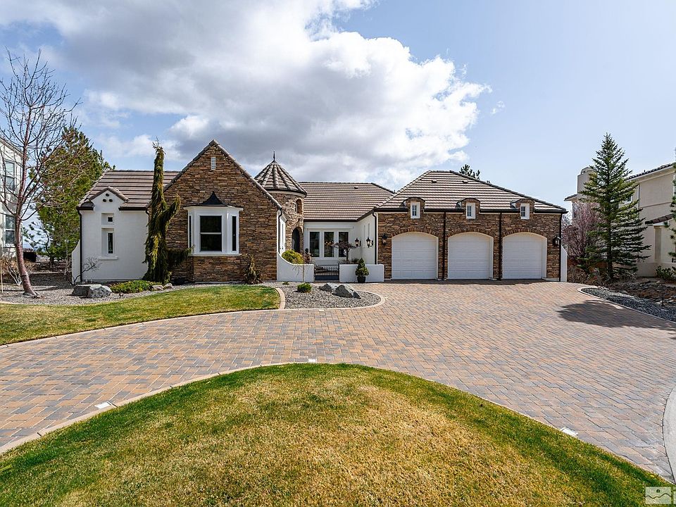 Nestled in the highly sought-after Arrowcreek community, this stunning single-level home offers the perfect blend of elegance, comfort, and breathtaking views. Situated at the end of a quiet cul-de-sac, its exceptional curb appeal is enhanced by exquiste landscaping and a convenient circular driveway & fresh exterior paint. Brand-new windows flood the home with natural light while showcasing the sweeping panoramic vistas. Lovingly maintained by its original owner, this home is move-in ready. See extendended, This home is a perfect blend of luxury and functionality, with trendy designer touches throughout! Custom-painted black interior doors and soft gold hardware add an elegant, modern vibe, while stylish decorative shelves in the entry and formal dining area make an eye-catching statement. Sellers have also made a significant $75K investment in premium new windows, enhancing both the beauty and efficiency of the home. The chef’s kitchen is a true highlight, featuring high-end appliances such as a 5-burner cooktop, newer dishwasher and microwave, double oven, trash compactor, built-in refrigerator, and wine refrigerator. The large island is perfect for both entertaining and everyday use, and the adjacent oversized great room is equally inviting, complete with custom built-ins, a gas fireplace, and stunning views of the east-facing backyard. This space opens up to a show-stopping outdoor oasis, complete with a huge multi-level paver patio, an outdoor kitchen, and charming patio string lights—ideal for intimate family moments or large gatherings. The sweeping mountain, golf, city, and valley views provide unmatched scenery, and with no rear neighbors, privacy is exceptional. This home is truly an entertainer’s dream! Additional features include a dog run, built-in storage and a workbench in the garage, as well as new lighting throughout most of the home. Plus, the washer, dryer, kitchen refrigerator, snow blower, and patio string lights will all convey with the property. This is a total-package home you don’t want to miss—run, don’t walk, to see it for yourself!